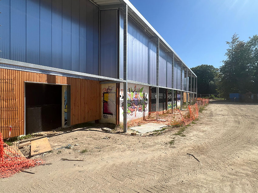 Après plusieurs semaines de préparation, la phase d’installation du chantier est désormais achevée. Les prochaines semaines verront l’intervention des différentes entreprises sur la façade côté tennis et halle skate, ainsi que le renforcement de la charpente.